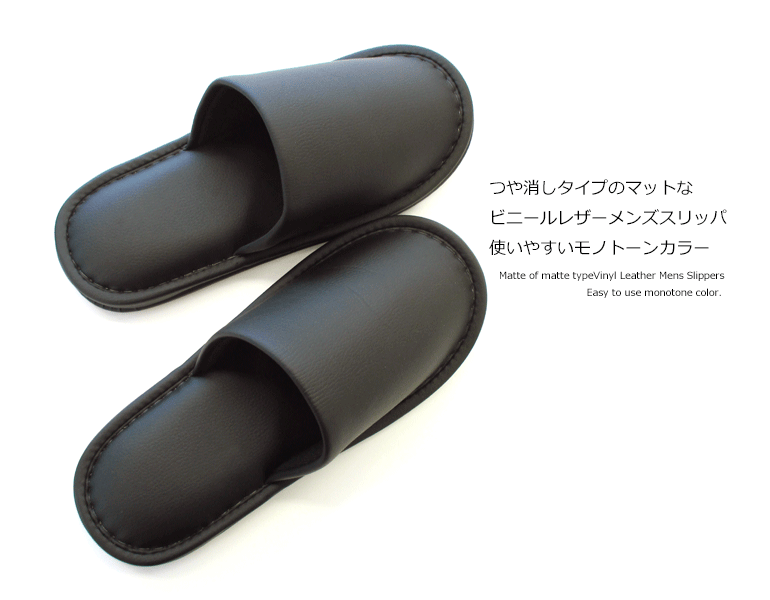 お手入れ簡単大人気ビニールレザーシリーズのマットなつや消しタイプスリッパです。モノトーンの2カラー展開でつや消しがなんともラグジュアリーな雰囲気を漂わせます♪お家用は勿論お店やサロンなどにお使い頂ける他にあまり無いモノトーンメンズサイズです。
