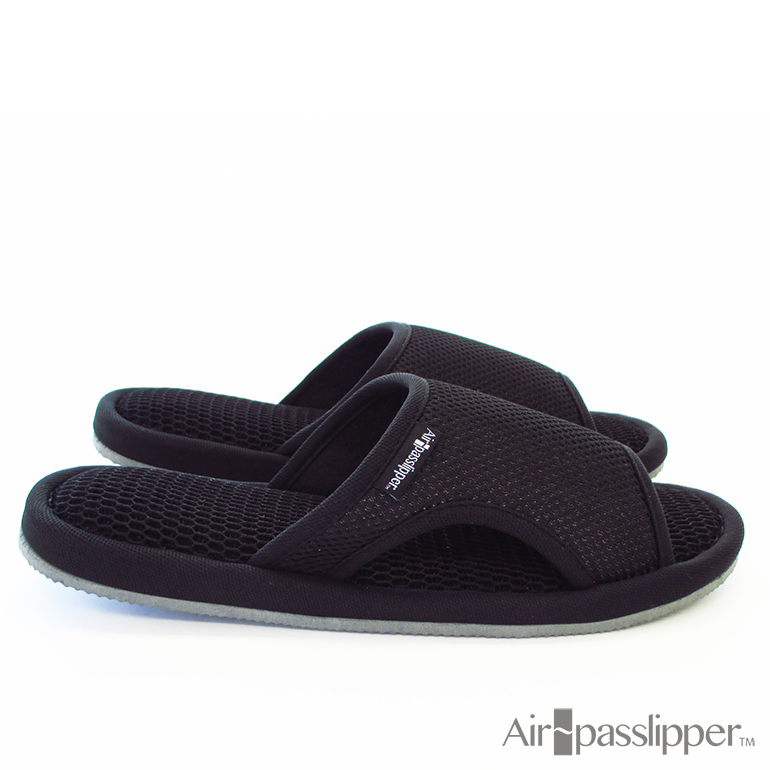 通気性に優れたAir~passlipper!内蔵されたインソールは「履く・歩く」の動作で圧力ポンプの役割を果たし、底穴が塞がない構造を提供しました。