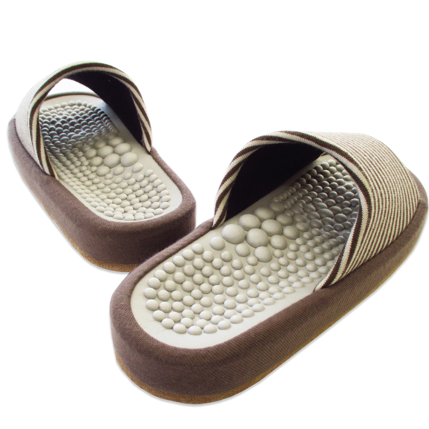 ナチュラルな雰囲気を漂わせるニットボーダーの健康スリッパです。健康スリッパは痛くて苦手。。。の方も、イボイボが大きめの柔らかタッチなので、チャレンジしやすい刺激になっております。全体の形状も足裏にフィットするコンフォートタイプです。ML2サイズなので、ファミリーやカップル、プレゼント