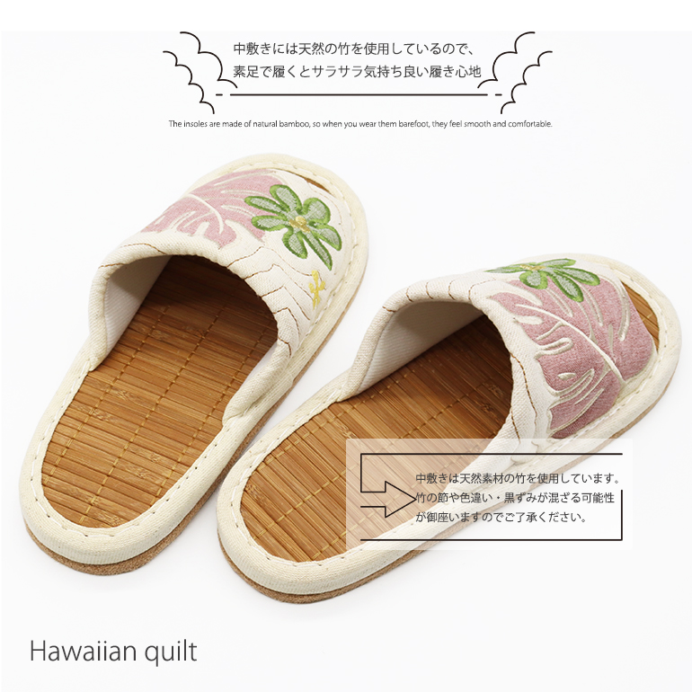 ハワイアンキルト ビックモンステラ茶竹スリッパ M L LLサイズ
